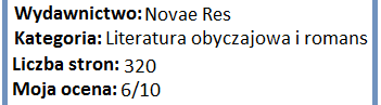 Podsumowując – „Nigdy nie jest za późno” to dobra, dojrzała powieść obyczajowa, z elementami kryminału. To książka o miłości, poszukiwaniu własnego szczęścia, z sensacyjnymi zwrotami akcji. Jeśli szukacie dobrze napisanej książki z niewymagającą fabułą, to ta pozycja jest dla Was idealna.